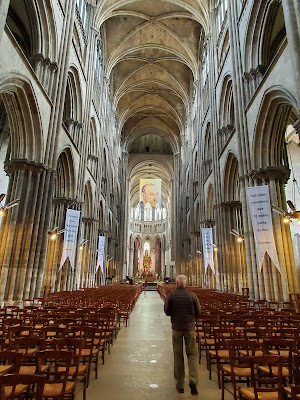 Another look at the outside and you can see where the statues had been in the now empty niches.There are several stone tombs, This one is for Rollo, the first duke of Normandy who died about 932 . Rollo was chief of the first group of Vikings who settled here.